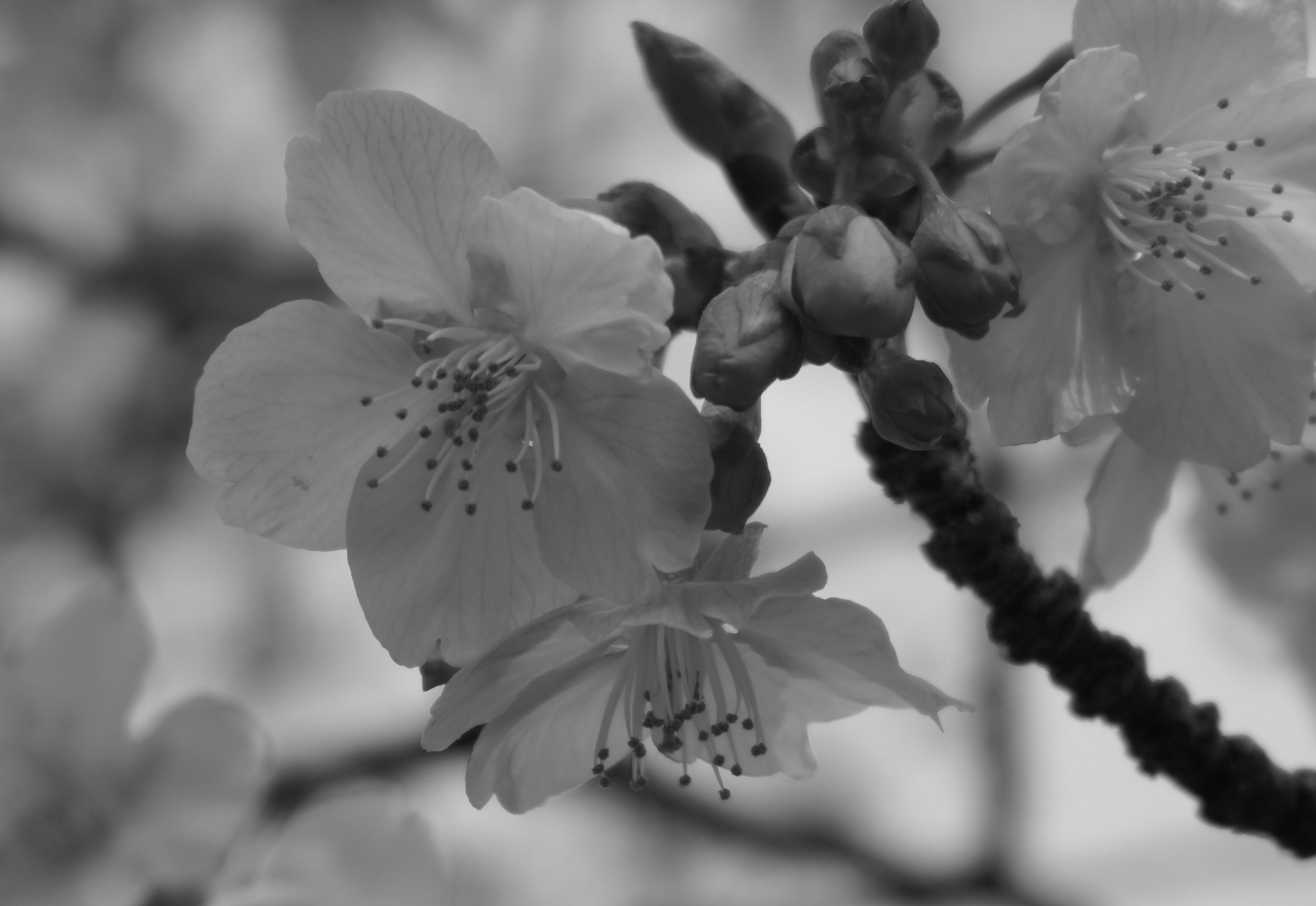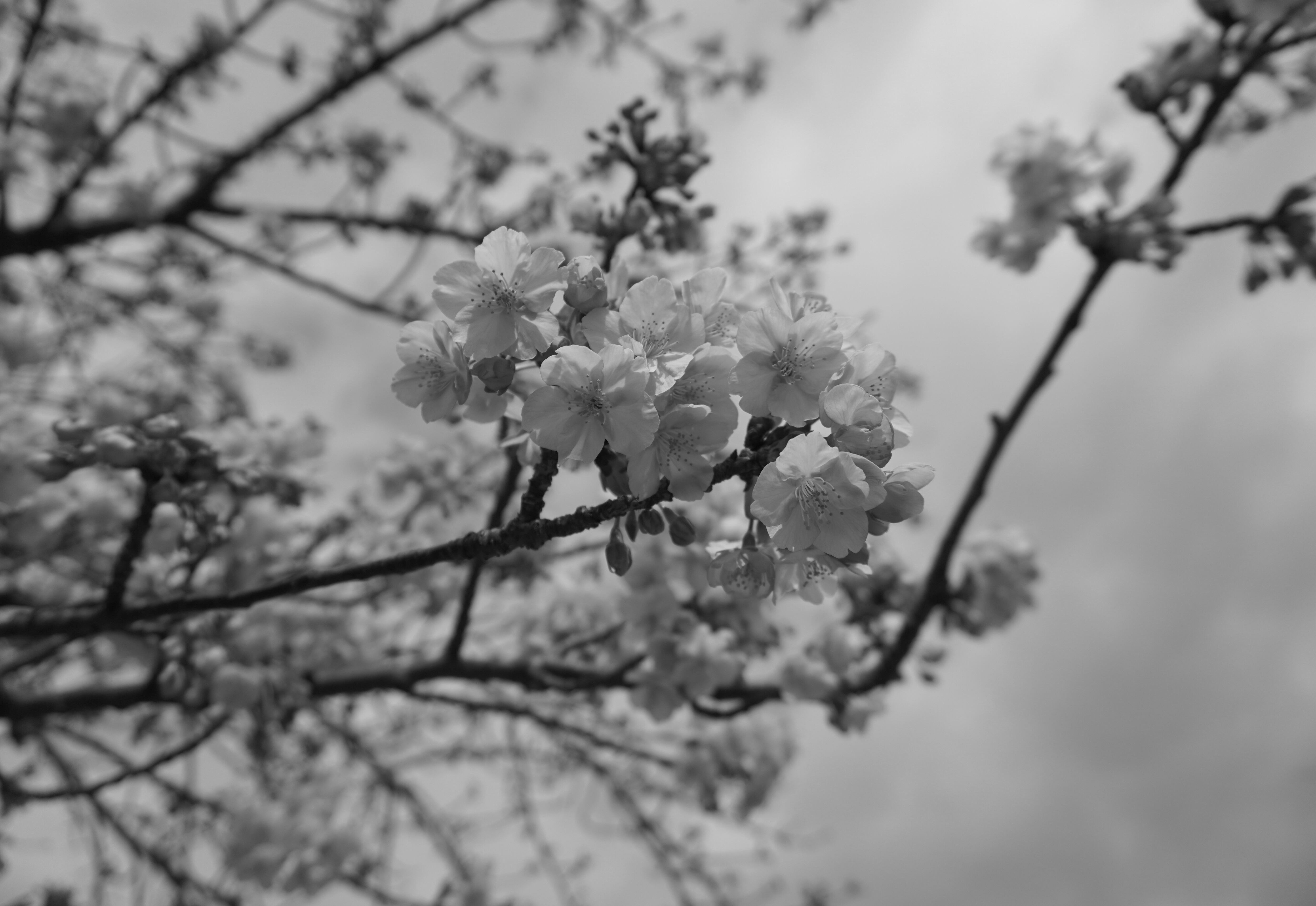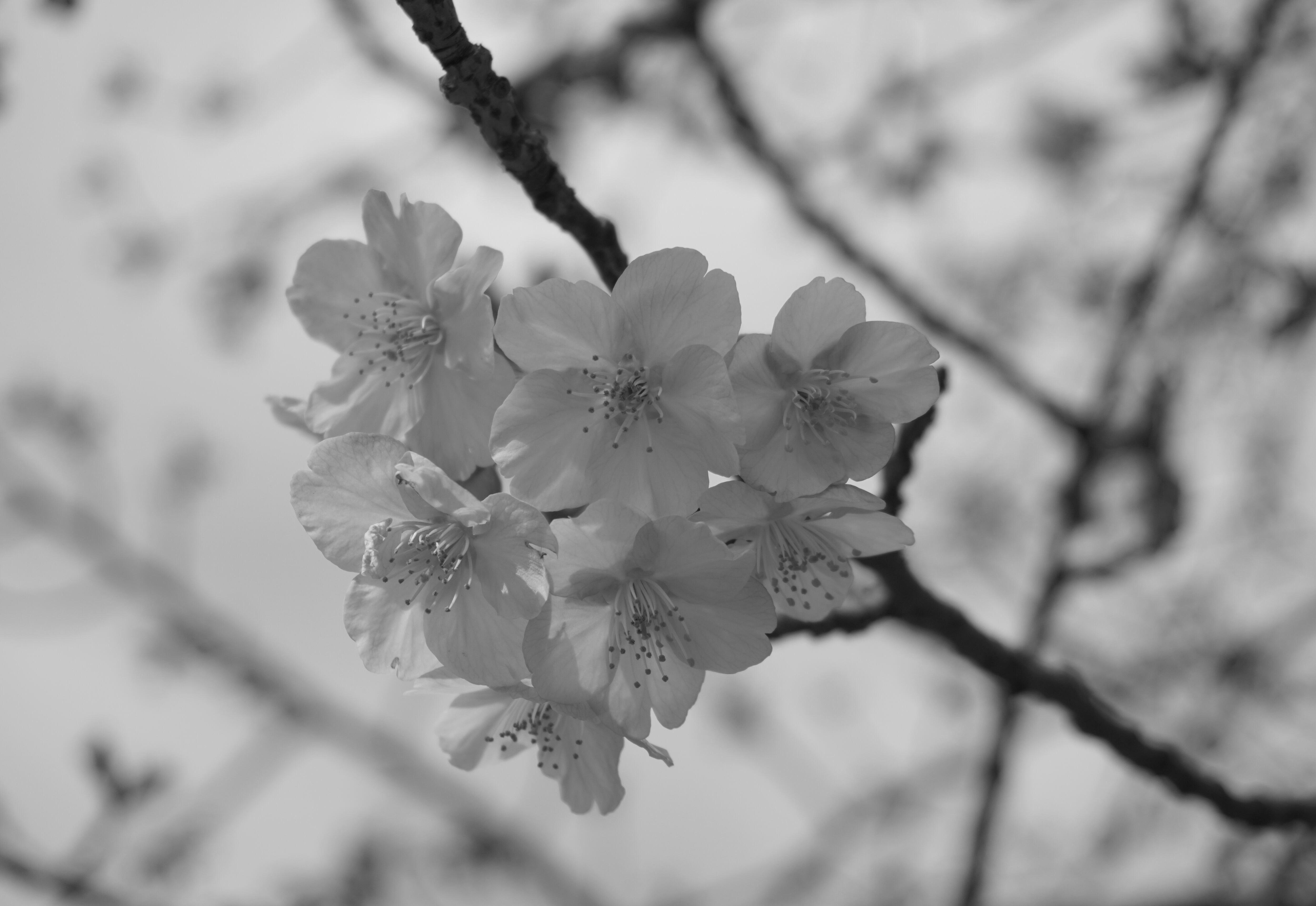 まだ冷たい風の中で、ひと足早く色づく河津桜。